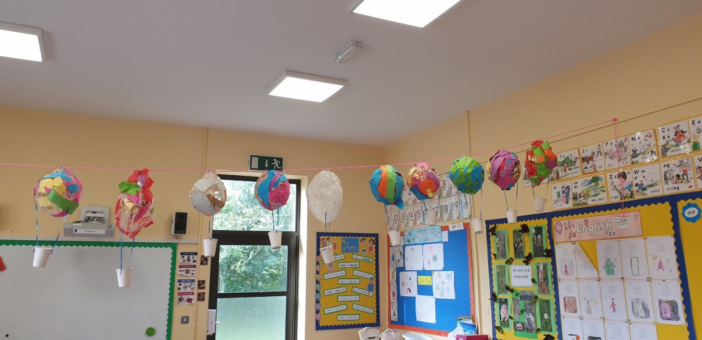 We have explored the theme of “transport” and decided that we would love to go for a hot air balloon ride! Every day during Aistear we took time to explore as many forms of transport as we could think of. Do you love our hot air balloons as much as we do?