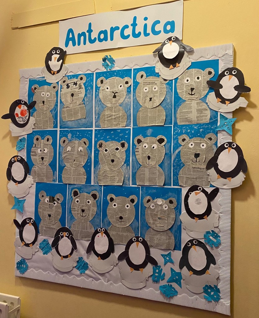 Junior, Senior Infants and First class have been learning all about Antarctica. The children listened to the story ‘The Emperors Egg’ by Martin Jenkins . We completed some lovely Aistear and art activities based on Antarctica.