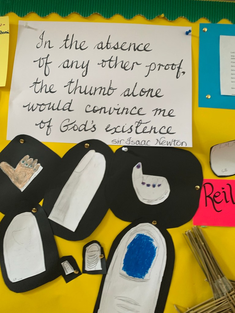 With Isaac Newton’s quote, we had a go drawing our thumbs!