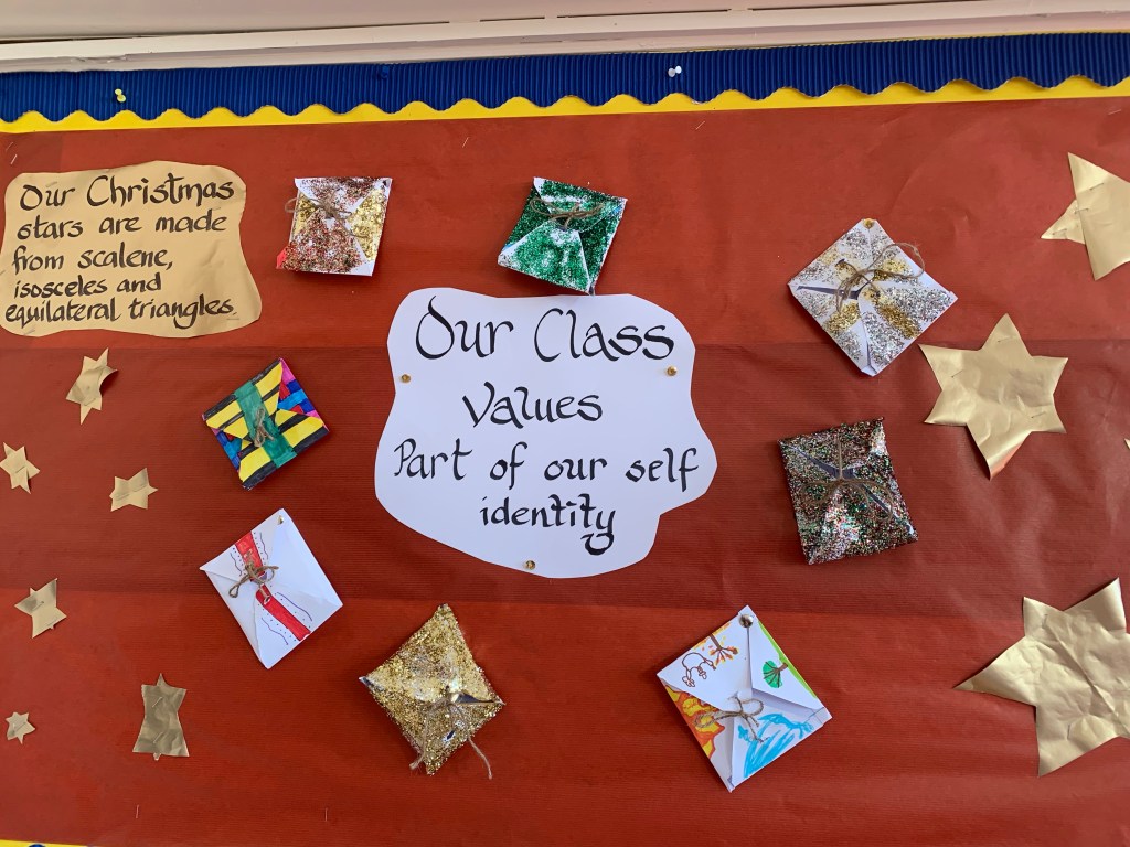We integrated our maths into our art display, making and measuring triangles to create stars!