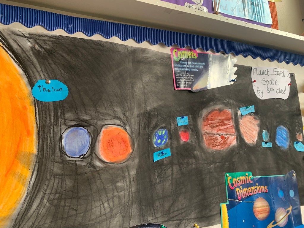Planet Earth in Space On February 9, 2023 By errewns A wonderful, mega-display by 5th class! Share this: Share on X (Opens in new window) X Share on Facebook (Opens in new window) Facebook Like Loading...