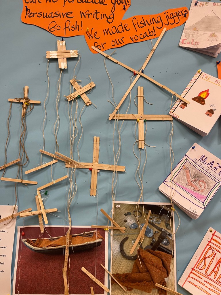 The children made ‘jiggers’ inspired by the coastal landscape which was the setting of the story.