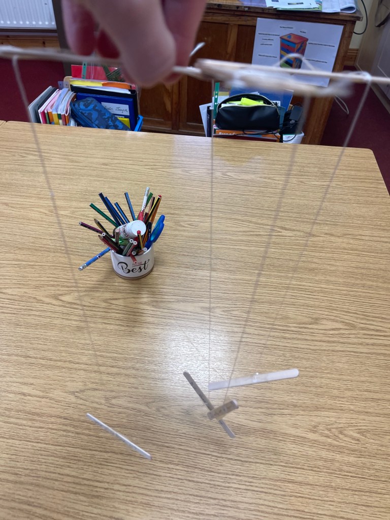 On the jiggers, the children taped or tied on questions they used when discussing their work.