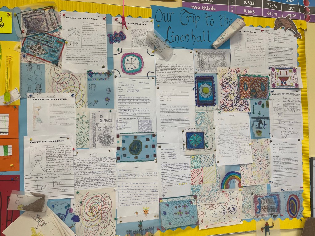 We had a splendid day at the Linenhall Arts Centre with a tour of the theatre and a pattern-making workshop.