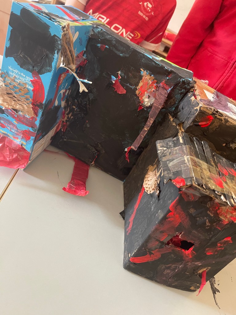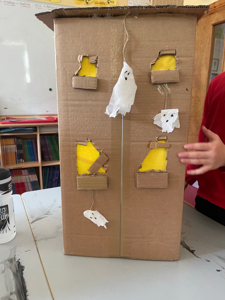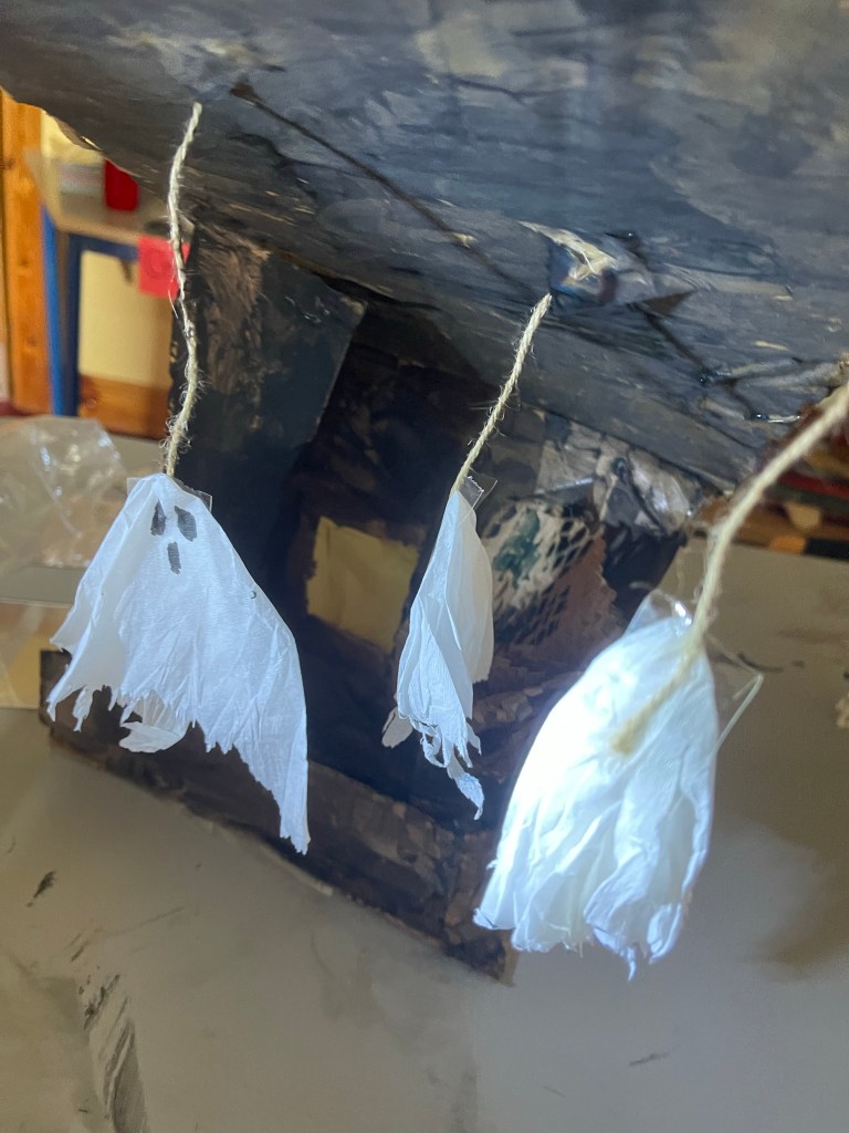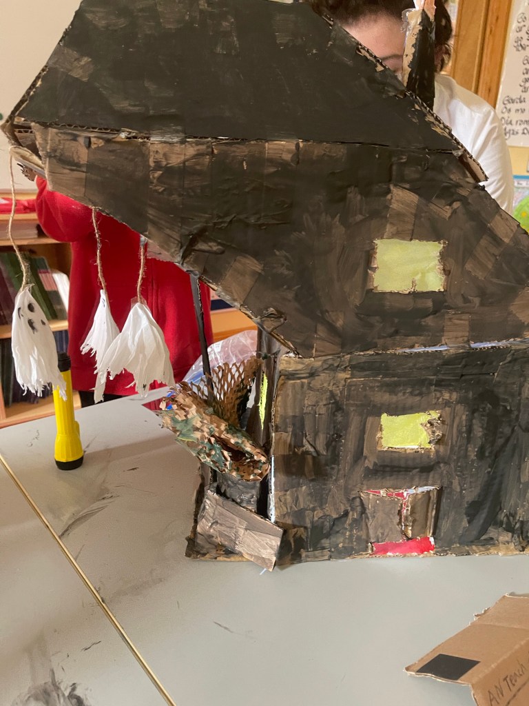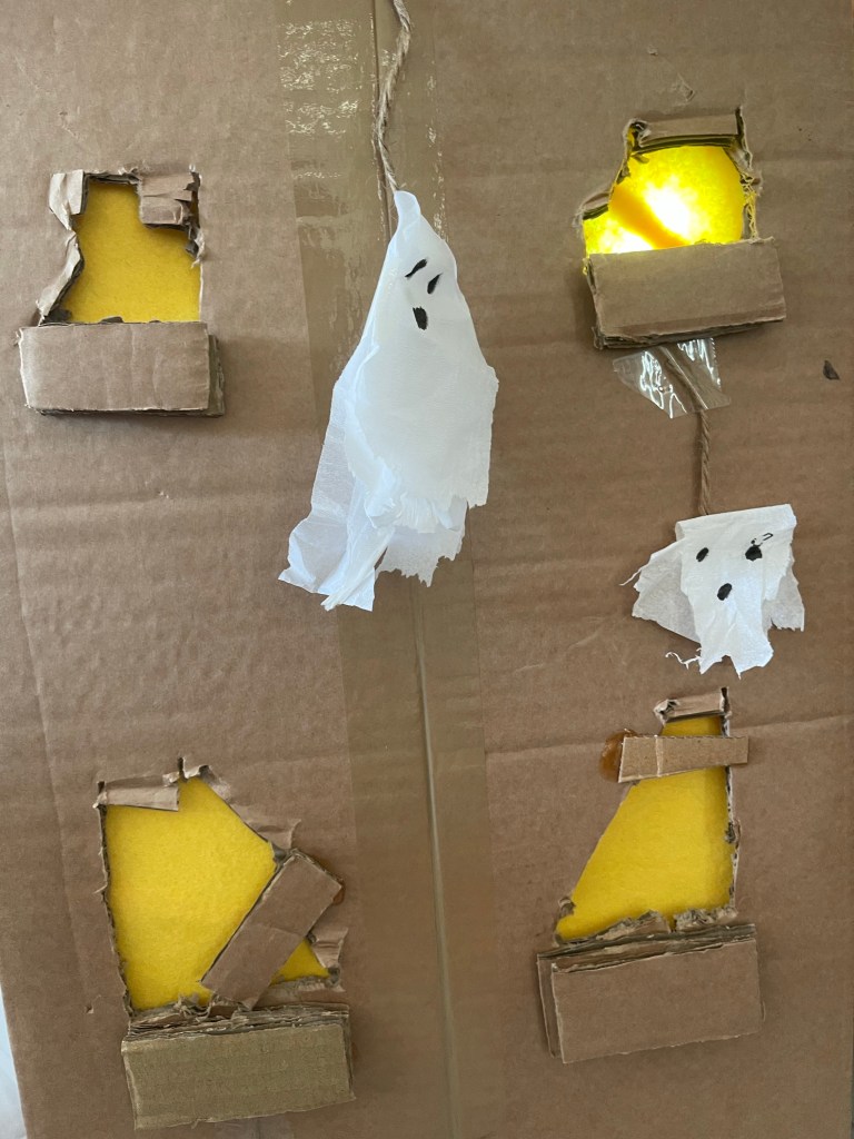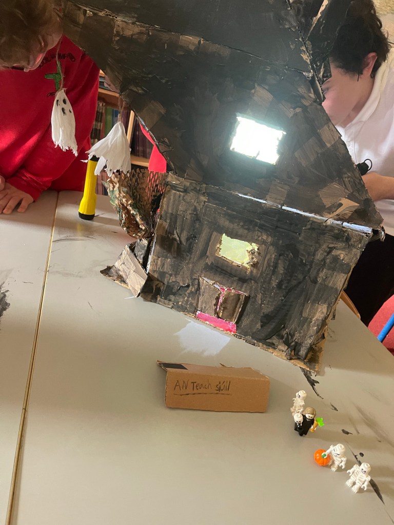 We also experimented with bouncing light, using torches and mirrors to reflect light to get it through our sugar paper tunnels and spaces!