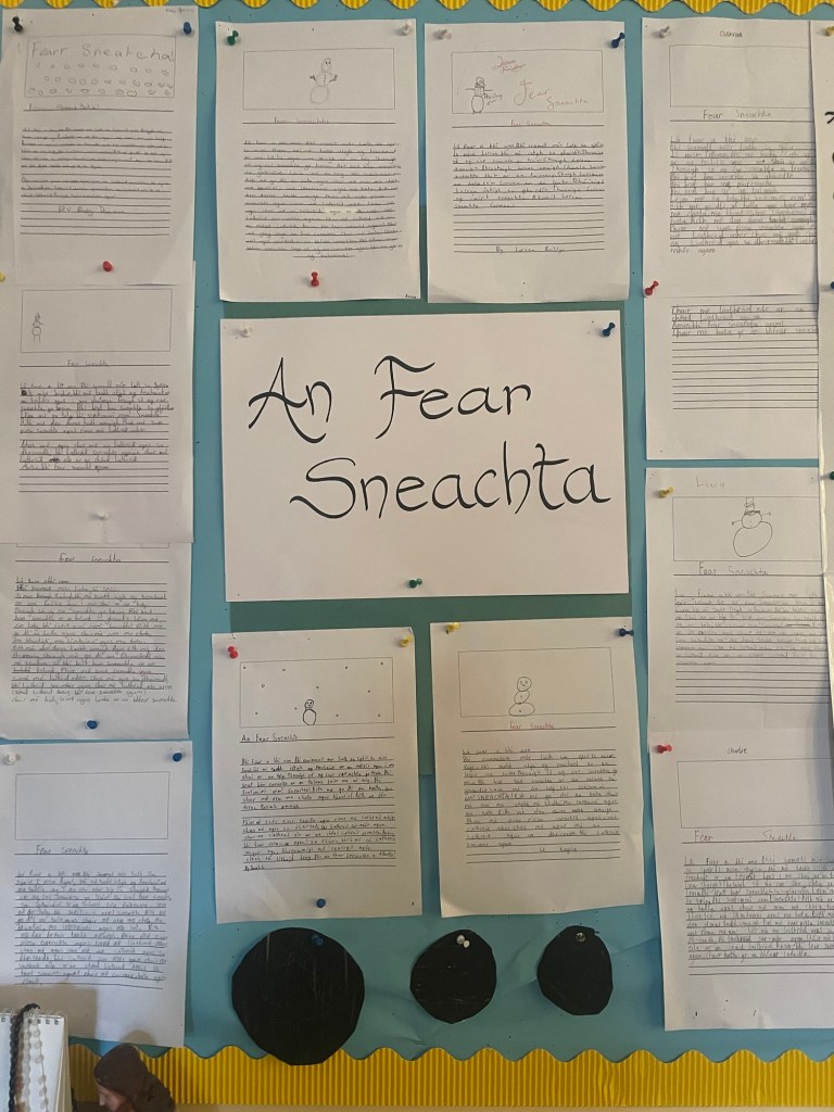 An Fear Sneachta On December 13, 2024 By errewns Some short stories from 3rd to 6th class! Share this: Click to share on X (Opens in new window) X Click to share on Facebook (Opens in new window) Facebook Like Loading...