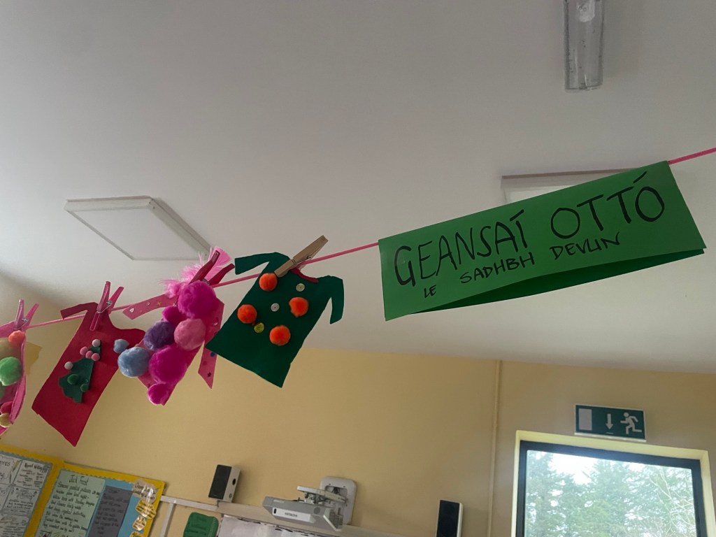 A gorgeous tale of one busy mamó, í gconaí ag cniotáil, making jumpers each year for her grandchild- it’s just that they’re not that fashionable!