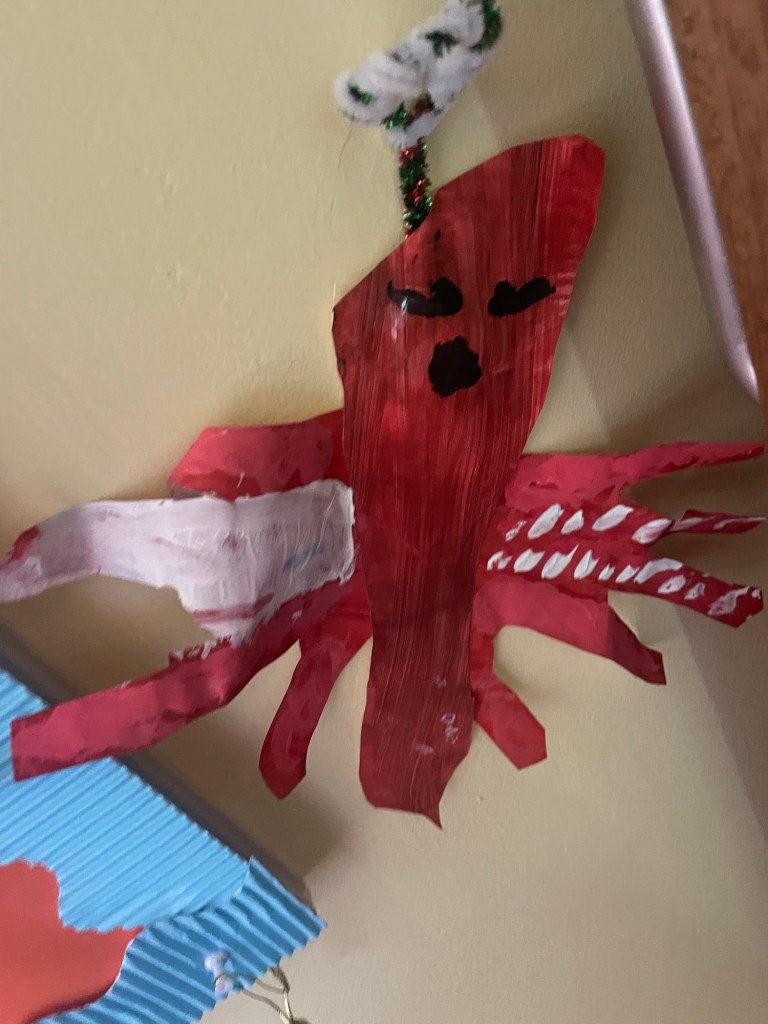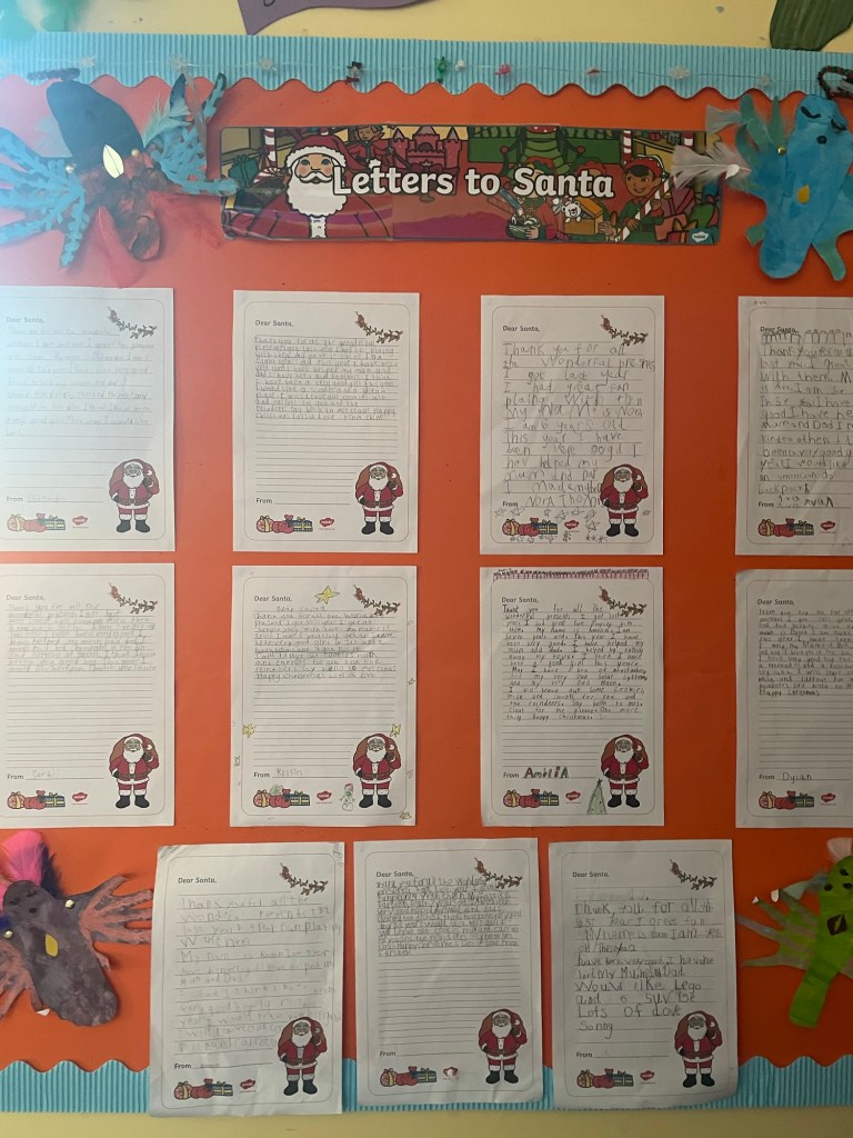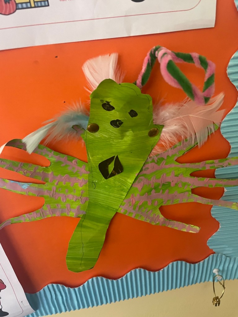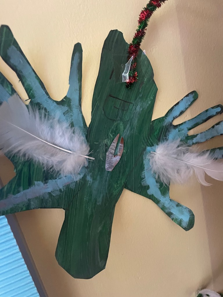 The notice board is decorated with hand and footprint angels and some exciting feather and pipe cleaner embellishments!
