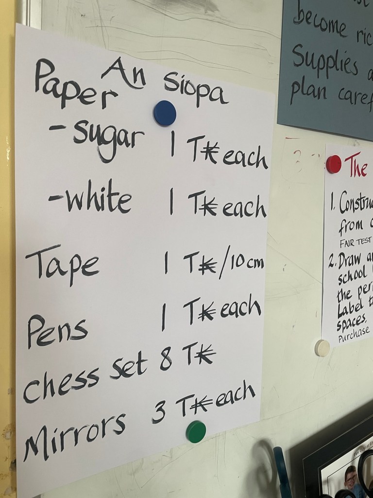 Each group received 10 golden tokens, to spend as they wished to purchase resources to meet the various demands of various tasks!