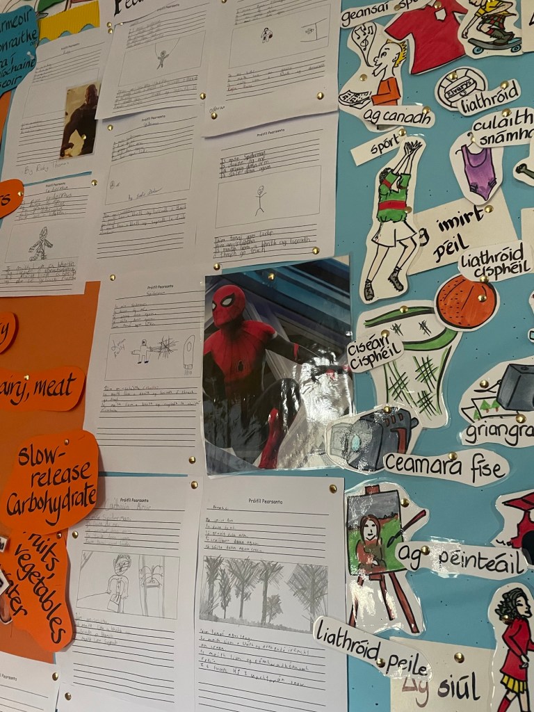 Profiles of some super folk, book characters and invented personas as Gaeilge! On January 19, 2025 By errewns We played ‘Guess Who?’ as Gaeilge and revised our own personal profiles, before choosing some fresh characters to explore! We included our Caitheamh Aimsire theme and included some Spanish and French where we could, in our oral work! Share this: Click to share on X (Opens in new window) X Click to share on Facebook (Opens in new window) Facebook Like Loading...