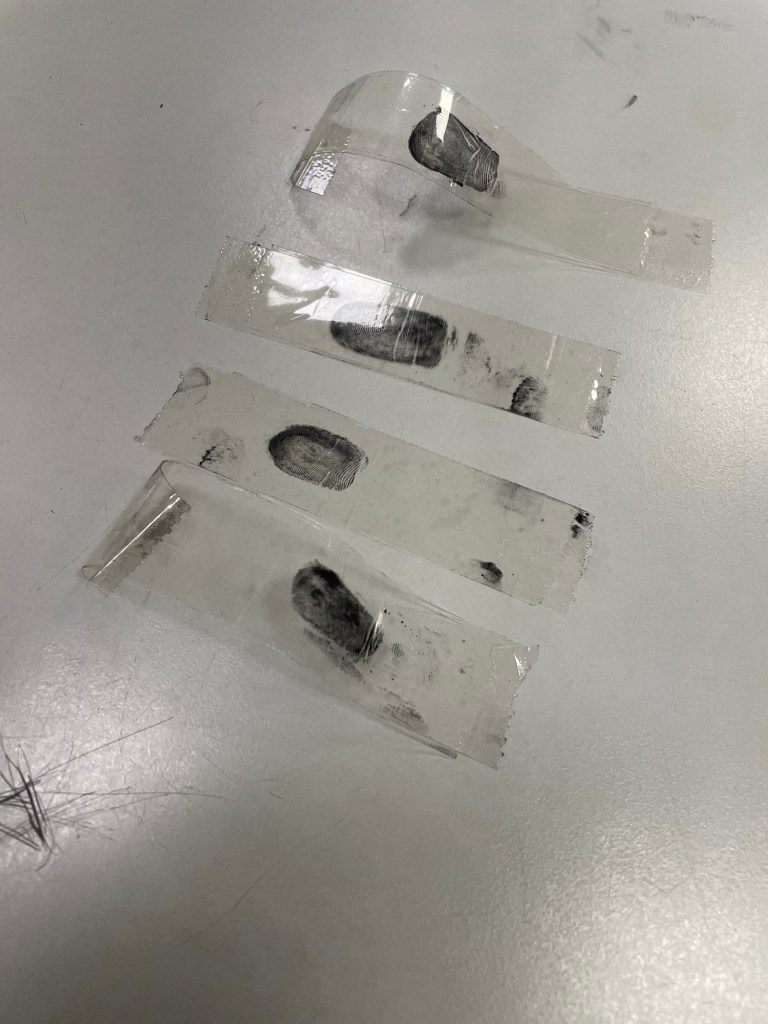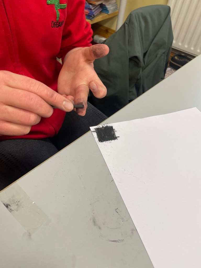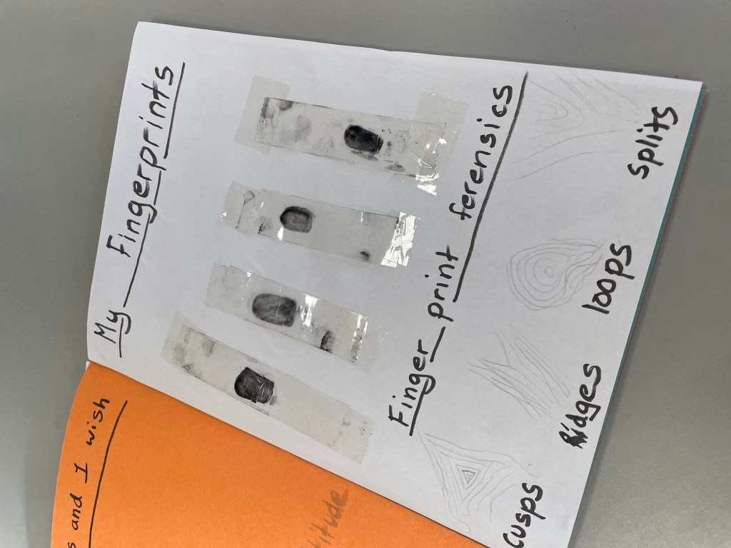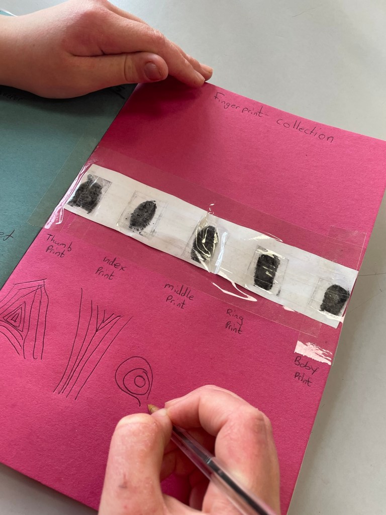 We explored some forensics- taking our finger prints using charcoal and sellotape, and we tested to see which eye is dominant!