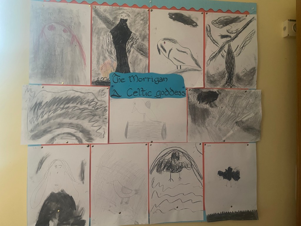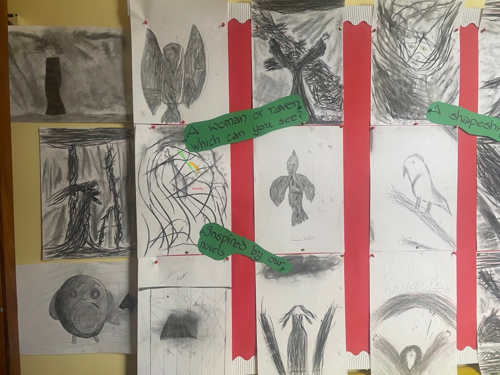 Seniors have been reading Catherine Doyle’s Stormkeeper’s Island, and made Morrigans in various forms!
