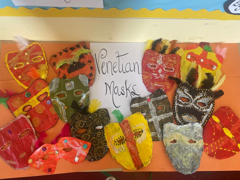 The children created papier mâché masks, inspired by carnivale in Venice!