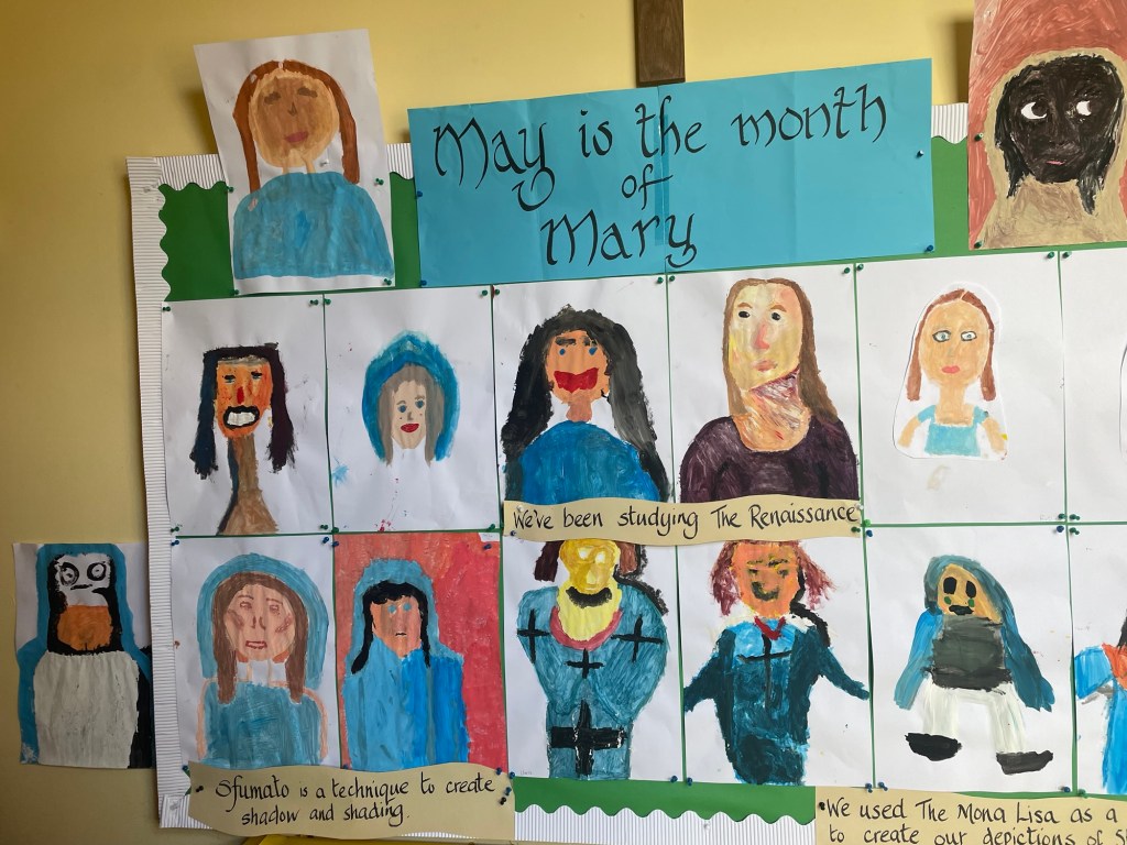We’ve been using sfumato at school! Inspired by our studies on Italy and The Renaissance, we’ve been looking at the Mona Lisa and used the painting as a stimulus for creating our depictions of Mary- with blended, shadowed areas instead of drawing lines.