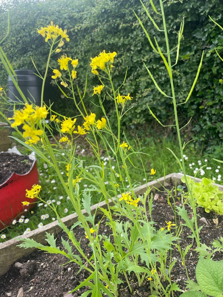 ‘Green salad bowl’ leaves! Soft and buttery and lovely. Lush, healthy kale- it loves this corner of the garden and has withstood the most powerful of kicks from future Sam McGuire winners here in Errew! Kale is deeply nutritious, iron-rich and makes delish ‘crisps’ and it grows so well and easily in these parts.Our root veg have a bit to go, it’s a bit early to harvest, and they’ll be ready for next term! Thanks to the ladies in Senior Infants for their help ‘thinning’ our carrots and parsnips!Peas! Lots and lots of pea pods have grown. They’re like little sweeties, emeralds in their pod shells. The radishes are finally big and rosy!Fresh mizuna! This hardy Asian salad leaf grows heartily in Ireland and can over-winter with some protection. A winner if you like your greens! The blackcurrants are thriving! Our canes have become really well-established and the canes can be cut and planted about the school in the future. Free, highly-nutritious berries that grow with ease in Ireland West!We didn’t harvest this mizuna; it’s gone to seed! The first harvest of peas yielded quite the crop. Dressed and ready to eat! Thanks to all the brave souls who gave their veggies a go, learning how to sow and grow for themselves. They’ll never go hungry!