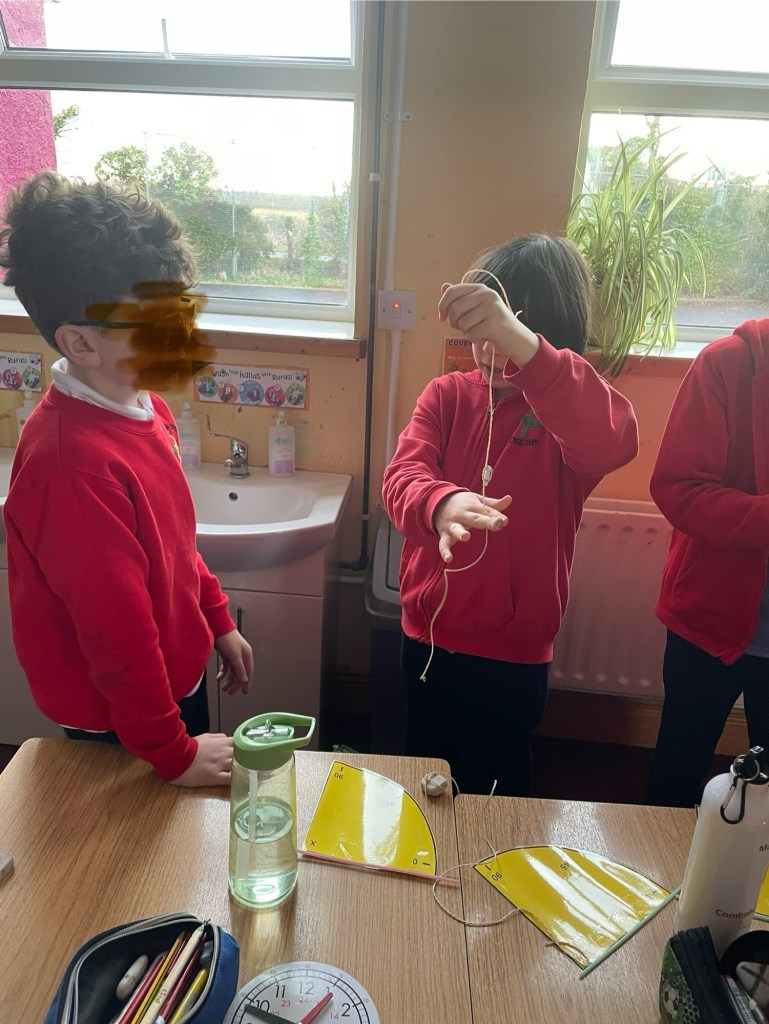 A tenacious, hard-working 6th class lady also made an amazing loop of paper, big enough for the whole class (and Ms P and Mr M!) from an A4 page! Wow! Try it!!!